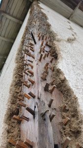 Renovering av gammal putsfasad ifrån 1800-talet. timmrad stomme med lerputs & utanpåliggande kalkputs.
